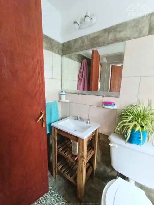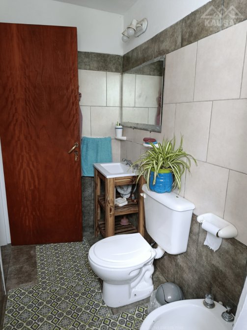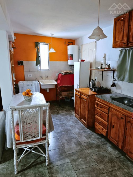 Cocina comedor integrada, con bajo mesada y alacena, ventilación cruzada, espacio para lavadero, termotanque eléctrico y salida al patio.