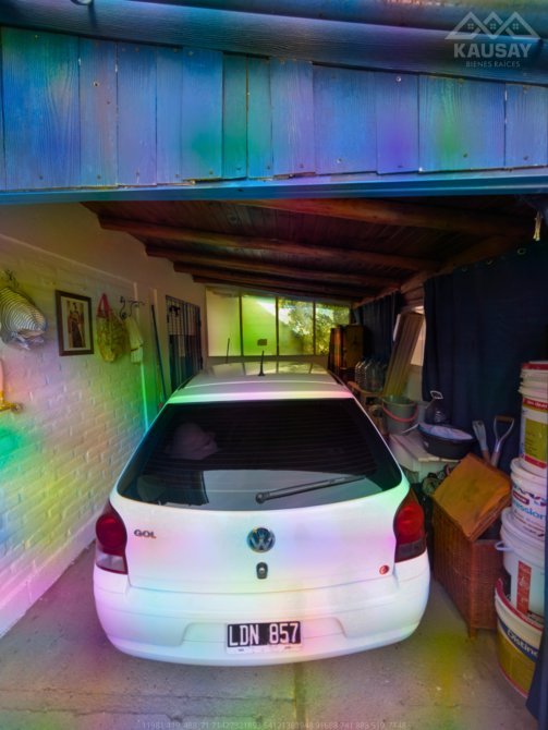 Garage/quincho cerrado, con ingreso mediante puerta ventana con rejas y conexión directa al living.